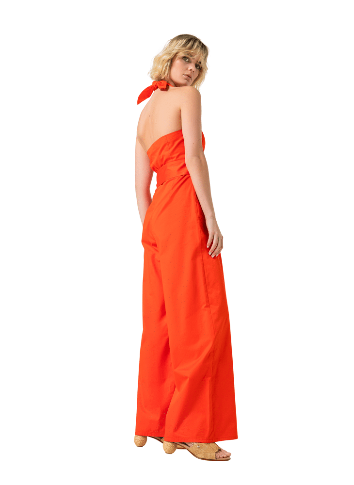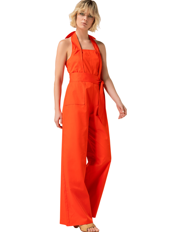 Jumpsuit in katoen met halternek