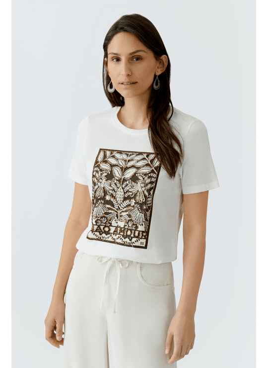T-shirt met print wit en bruin